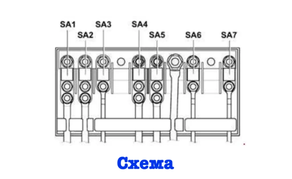 | 2 | Запобіжники 80A в комутаційному блоці |