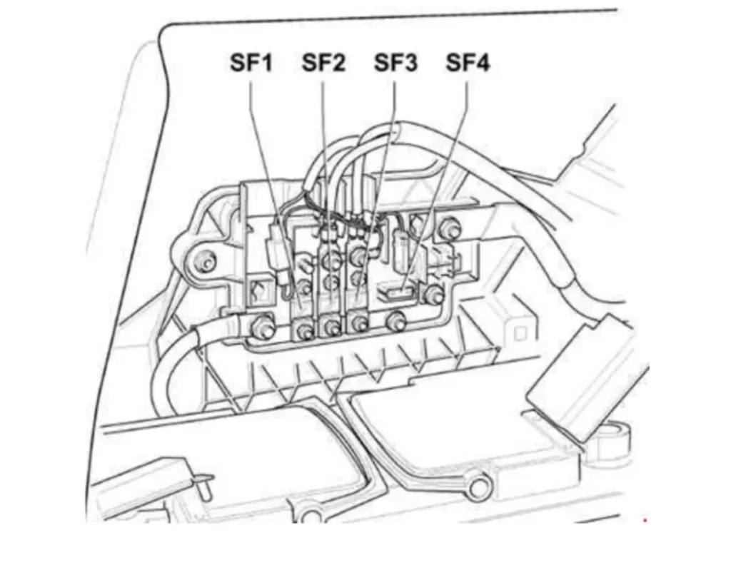 | 4 | Термічний запобіжник 60A 1 Регулювання сидіння, блок запобіжників ліворуч/праворуч |