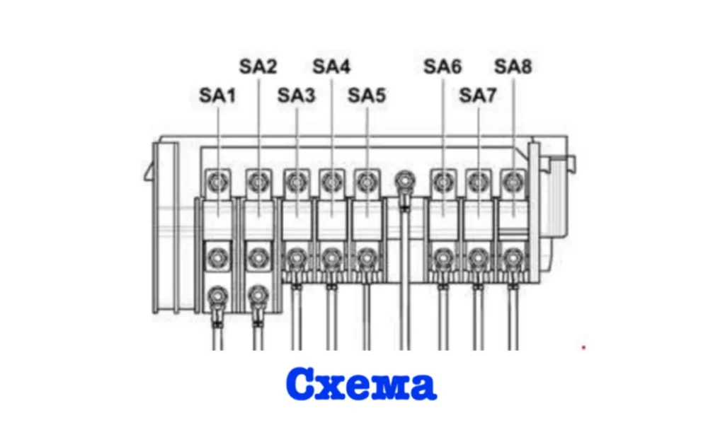 | 2 | Запобіжники 80A в комутаційному блоці |