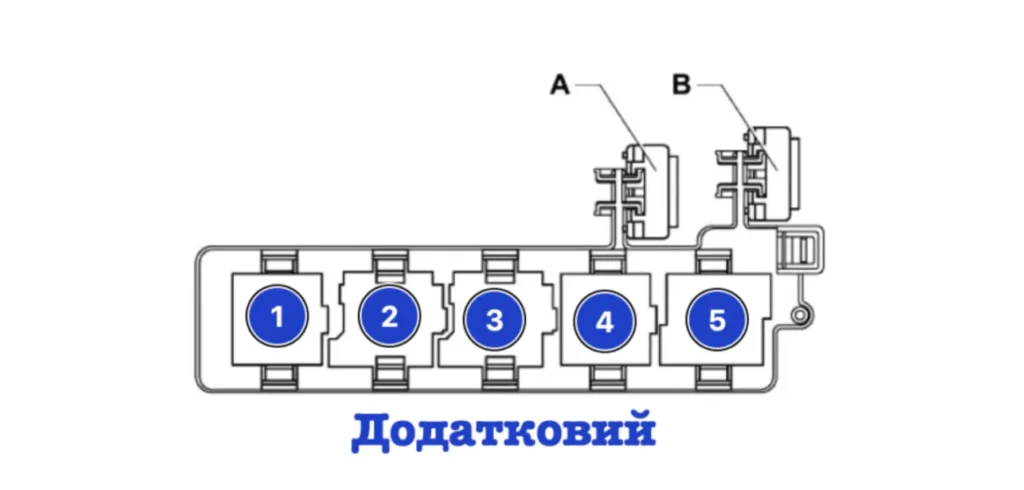 У деяких моделях можливе розташування додаткових реле поза блоком: реле керування свічками розжарювання і реле насоса системи подачі повітря.