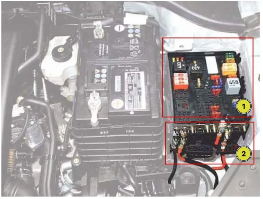 Блок запобіжників і реле Джетта 5 розташований поруч з акумулятором і закритий захисною кришкою. Складається з двох ящиків: